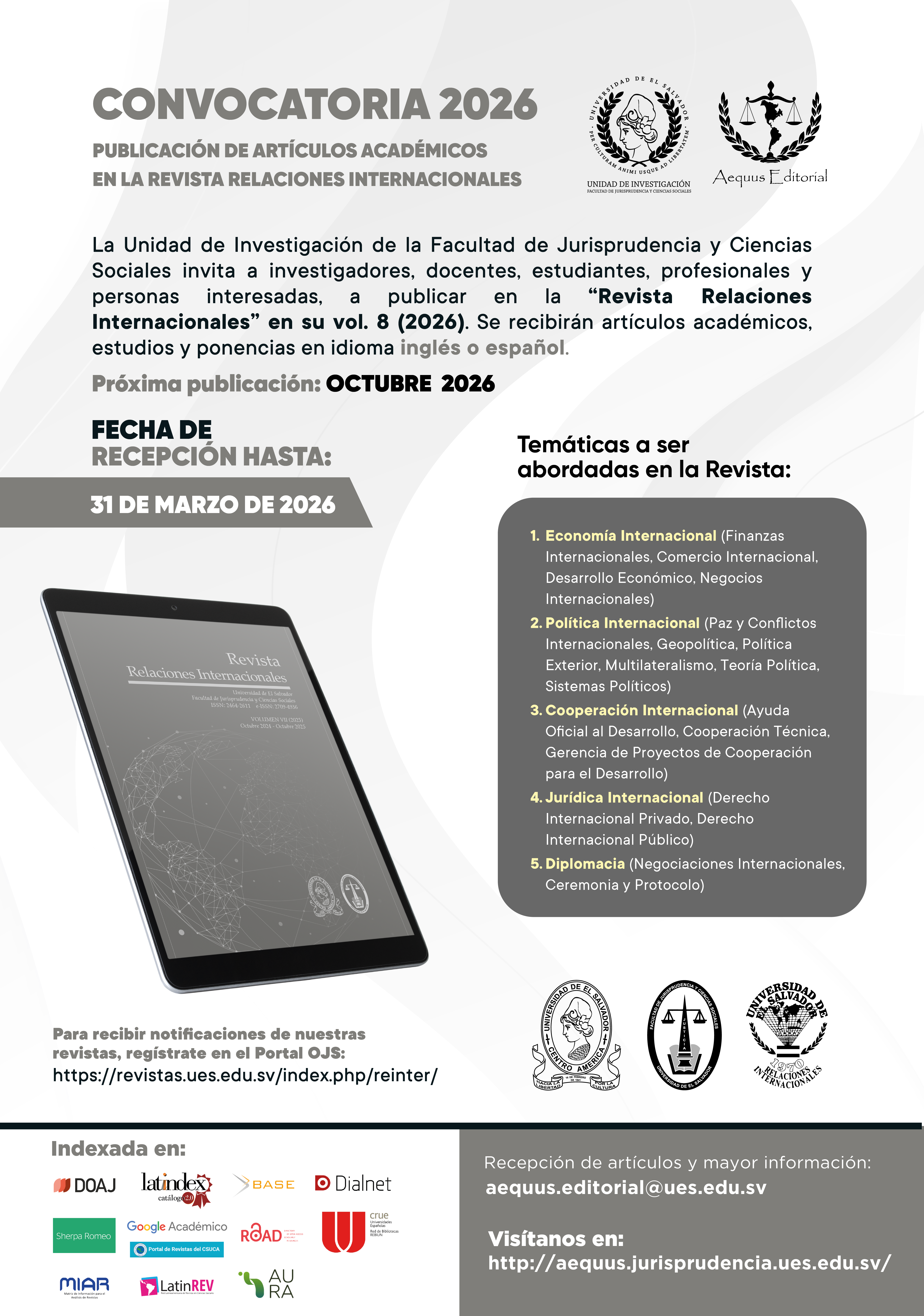 Aequus es el sello editorial de la Facultad de Jurisprudencia y Ciencias Sociales de la Universidad de El Salvador y está a la disposición de estudiantes, investigadores, docentes nacionales e internacionales para la publicación de libros, artículos, documentos de trabajo y producción académica en general.